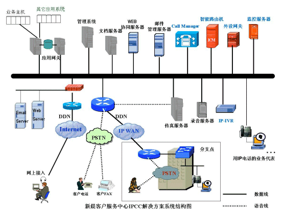 在IP技術應用日益廣泛的今天,新晨集團和著名網(wǎng)絡技術提供商-美國思科系統(tǒng)有限公司(CISCO)合作,推出了基于IP技術的CALL CENTER解決方案。該方案以CISCO IP CONTACT CENTER平臺為核心,簡稱IPCC。