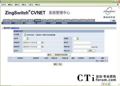 英立訊科技的ZingSwitch CVNET 一體化呼叫中心平臺(tái)在核心專利處理器芯片上實(shí)現(xiàn)了海量的實(shí)時(shí)錄音功能。交換機(jī)可同時(shí)對所有電話通道進(jìn)行實(shí)時(shí)錄音,各通道實(shí)時(shí)錄音不影響正常通話。錄音數(shù)據(jù)會(huì)以MP3格式存儲(chǔ)在交換機(jī)緩存中保存錄音文件。在錄音時(shí),平臺(tái)自動(dòng)記錄呼叫的通道號、日期時(shí)間、來電號碼、外撥號碼等信息。