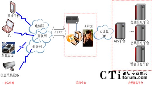 應(yīng)用服務(wù)平臺:以GIS平臺為主,配合交通信息平臺、公共信息平臺以及餐飲酒店娛樂信息服務(wù)平臺、社交網(wǎng)站服務(wù)平臺、車輛服務(wù)信息平臺、應(yīng)急救援服務(wù)平臺、媒體內(nèi)容服務(wù)平臺等各類型的應(yīng)用服務(wù),根據(jù)應(yīng)用需求提供相應(yīng)的服務(wù)和數(shù)據(jù)。各應(yīng)用服務(wù)通過云計算、SOA、數(shù)據(jù)總線等技術(shù)實現(xiàn)互聯(lián)互通、信息共享,同聯(lián)絡(luò)中心應(yīng)用集成,并通過聯(lián)絡(luò)中心向用戶提供服務(wù)。