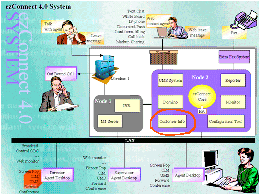 作為一種成功的企業(yè)應(yīng)用案例,這種方案已經(jīng)成功的應(yīng)用在我們的企業(yè)級多媒體呼叫中心 ezConnect產(chǎn)品中,該產(chǎn)品能同時處理傳統(tǒng)呼叫中心的電話請求和以互聯(lián)網(wǎng)為中心的Web 請求,同時配備多種實(shí)時交流手段,軟電話功能和基于web 的文本交談,圖片共享,白板,文檔推送,IP電話,UMS, SMS 和WAP 等為客戶提供很方便且實(shí)用的功能, 并且提供基于特定技能路由的分配器,同時處理電話和Web請求。而且同時支持多種語言并提供統(tǒng)一的配置工具。當(dāng)該請求到達(dá)座席時,在座席的桌面上彈出客戶的基本信息和交易信息,座席可以根據(jù)這些信息給客戶提供更加個性化的服務(wù)。本文就針對該產(chǎn)品的實(shí)際開發(fā)和實(shí)現(xiàn), 以及工作中的一些感想來與大家共同探討客戶信息管理的應(yīng)用和前景。