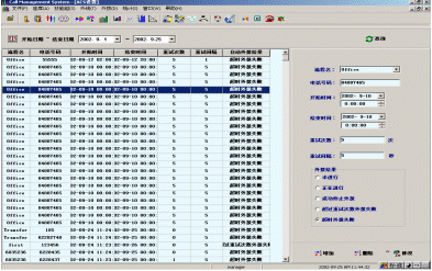 | 外撥實(shí)時(shí)監(jiān)控模塊 | 顯示外撥開(kāi)是時(shí)間為當(dāng)前時(shí)間的前一個(gè)小時(shí)和后一個(gè)小時(shí)內(nèi)的外撥信息。并按照管理員設(shè)定的刷新時(shí)間進(jìn)行刷新。 |