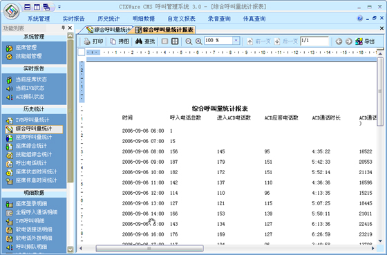 為了解整個呼叫中心系統(tǒng)的運(yùn)行狀況和工作人員的工作情況,系統(tǒng)由專門的數(shù)據(jù)統(tǒng)計功能。數(shù)據(jù)統(tǒng)計功能對各種信息資料進(jìn)行管理,數(shù)據(jù)統(tǒng)計功能負(fù)責(zé)收集、統(tǒng)計系統(tǒng)資源的利用情況、各項業(yè)務(wù)的執(zhí)行情況、系統(tǒng)整體運(yùn)行情況,并可定期刷新數(shù)據(jù)形成報表。