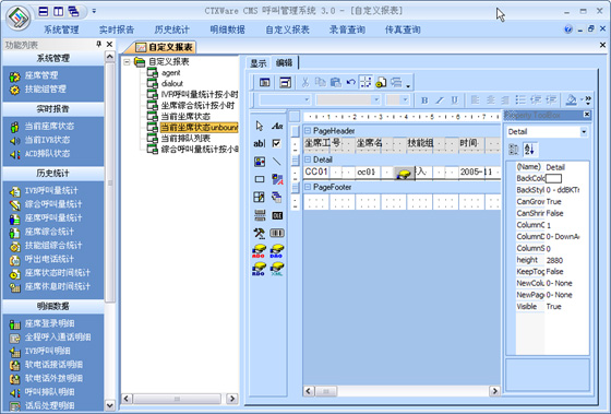 CMS是有效的對呼叫中心進(jìn)行監(jiān)視和管理的系統(tǒng)。它可以實時監(jiān)控整個呼叫中心的當(dāng)前數(shù)據(jù),按照座席、技能組、中繼線、隊列、路由進(jìn)行監(jiān)視,查看座席服務(wù)狀態(tài)及接通率各種指標(biāo),通過各項實時記錄和歷史記錄向用戶提供多種綜合分析報告和統(tǒng)計報告。其所生成的上百張報表,可以協(xié)助企業(yè)有效管理資源,檢查成本,預(yù)測改善現(xiàn)有運(yùn)作的潛在需求。并提供圖表顯示,生成Excel文檔進(jìn)行再編輯,或者通過標(biāo)準(zhǔn)的報表形式進(jìn)行編輯。支持自定義報表。