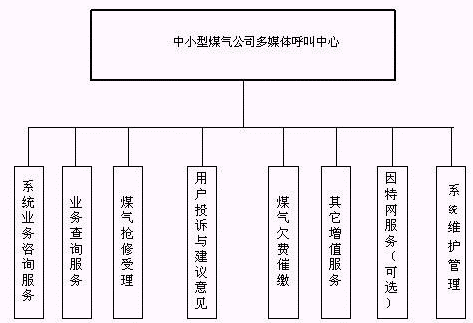 客戶利用電話、手機(jī)等撥打某一特服號碼(如9xxxx)進(jìn)入中小型煤氣公司多媒體呼叫中心系統(tǒng),本系統(tǒng)依托煤氣公司各類業(yè)務(wù)技術(shù)支持系統(tǒng)和網(wǎng)絡(luò)系統(tǒng),通過人工受理或自動語音服務(wù)等方式全天24小時不間斷地為客戶提供各種服務(wù)。