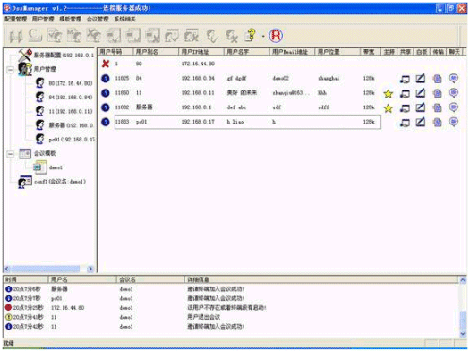 簡(jiǎn)單方便的用戶(hù)管理,可以增加用戶(hù)、修改用戶(hù)信息、刪除用戶(hù)等。在會(huì)議中可以實(shí)時(shí)地檢測(cè)和顯示用戶(hù)的網(wǎng)絡(luò)狀態(tài)。