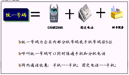 鐵路內部員工可以統(tǒng)一所有的通信工具,只使用一個號碼,一次呼叫便可以完成通信,使通信更加簡單、可靠。可以實現(xiàn)換機換網(wǎng)不換號,用戶獲得一個終身的聯(lián)系號碼,用戶無論更換任何通信工具,聯(lián)系號碼和方式不會改變。例如:在路局領導找下屬的時候,只需要撥打他的統(tǒng)一號碼,便可以直接找到他。不必考慮他是否在外出還是在辦公室,是否更換了手機號碼。統(tǒng)一號碼就像他員工號碼,始終不變,即撥即通!