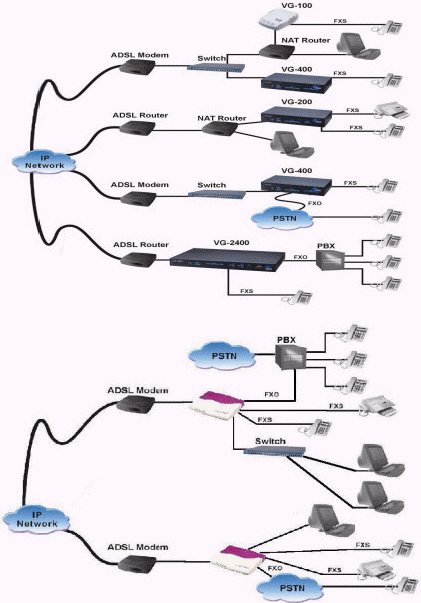 VG400語音網(wǎng)關(guān)產(chǎn)品的企業(yè)網(wǎng)IP電話編號與呼叫的優(yōu)越性在于保護(hù)了現(xiàn)有傳統(tǒng)設(shè)備如電話機(jī)、傳真機(jī)、PBX、KTS(鍵控電話系統(tǒng))等的投資,建立了這些傳統(tǒng)設(shè)備與IP網(wǎng)之間的橋梁。