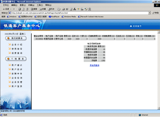 1) 鐵通業(yè)務咨詢界面
