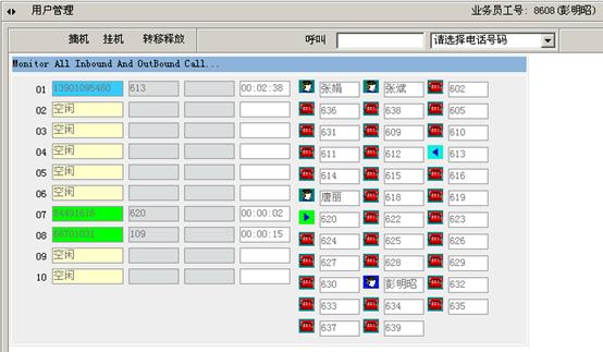 1)系統(tǒng)與CTI服務(wù)器配合,輕松實(shí)現(xiàn)諸如:實(shí)時(shí)監(jiān)控系統(tǒng)的呼叫隊(duì)列、登陸坐席的狀態(tài);并且通過(guò)屏幕控制電話的接答、掛機(jī)、轉(zhuǎn)接,以及建立會(huì)議等操作。如圖2:
