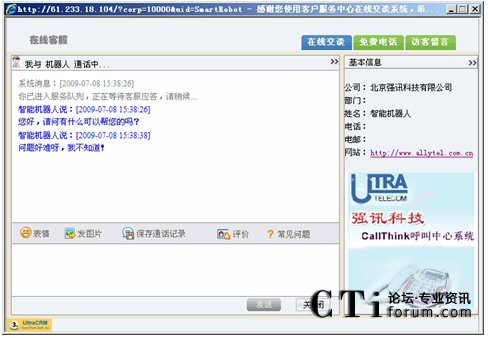訪客可以通過點(diǎn)擊網(wǎng)站的 “客服”鏈接自動選擇交談對象或點(diǎn)擊“客服人員”進(jìn)行交談。