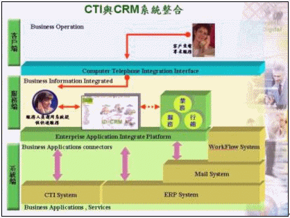 但傳統(tǒng)的CTI系統(tǒng)其重點(diǎn)乃是著重在服務(wù)工作的自動(dòng)化方面,只提供簡(jiǎn)單的客戶來(lái)電訊息提示,對(duì)于客戶進(jìn)一步的背景資料、嗜好、購(gòu)買需求及歷史往來(lái)記錄并不清楚也無(wú)法實(shí)時(shí)得知,更別說(shuō)想藉由CTI系統(tǒng)來(lái)提供客戶個(gè)人化的服務(wù)、有效節(jié)省通話時(shí)間、刺激其潛在的購(gòu)買需求,為了達(dá)成上述的目標(biāo),唯有將CTI系統(tǒng)與CRM系統(tǒng)進(jìn)行整合,如此,客戶服務(wù)的質(zhì)量才可能達(dá)成某個(gè)程度的提升,而良好的客戶關(guān)系管理也將是未來(lái)呼叫中心運(yùn)作成功與否的關(guān)鍵所在。