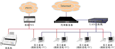 。。某中小企業(yè),無分支機(jī)構(gòu),現(xiàn)時(shí)有一個(gè)由傳統(tǒng)PBX構(gòu)建的電話系統(tǒng)和一個(gè)以太局域網(wǎng),兩者相互獨(dú)立,局域網(wǎng)通過一臺(tái)代理服務(wù)器用以太網(wǎng)或ADSL方式接入Internet。企業(yè)的語音通信由電話系統(tǒng)實(shí)現(xiàn);員工的日常工作需要使用計(jì)算機(jī)以及多種局域網(wǎng)和Internet服務(wù)(如文件共享、網(wǎng)絡(luò)打印、瀏覽網(wǎng)頁、收發(fā)郵件等),這些服務(wù)通過局域網(wǎng)提供,目前,在企業(yè)的經(jīng)營管理上還沒有應(yīng)用相關(guān)的業(yè)務(wù)系統(tǒng)(如工作流、ERP、CRM等)。