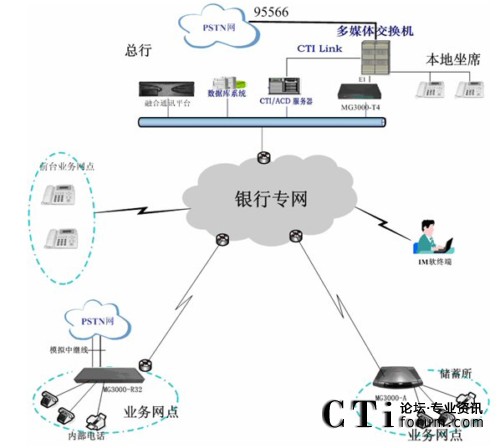 再是目前中行內部的電話系統(tǒng)全部基于PSTN網(wǎng)絡,通訊成本很高,為了充分利用中行自有的數(shù)據(jù)網(wǎng)絡,節(jié)省中行通訊成本,提高中行內部的溝通效率,規(guī)劃全省的內部IP語音通訊系統(tǒng)。