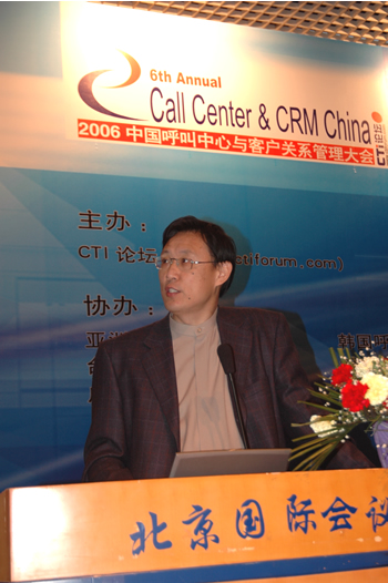 2006年4月3日至5日,2006中國呼叫中心與客戶關(guān)系管理大會在北京國際會議中心隆重召開,以下是九五太維副總裁李寶民博士專題演講實(shí)錄: