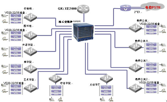 IP語音網(wǎng)拓撲圖如下: