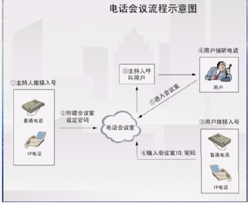 - 多方電話會(huì)議功能,最多可以實(shí)現(xiàn)16方通話。電話會(huì)議介紹(當(dāng)會(huì)議室中僅有一個(gè)人的時(shí)候,聽(tīng)到的是等待音樂(lè))。