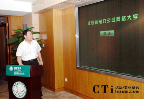 圖:江蘇省電力公司總經(jīng)理馮軍啟動(dòng)網(wǎng)絡(luò)大學(xué)程序界面