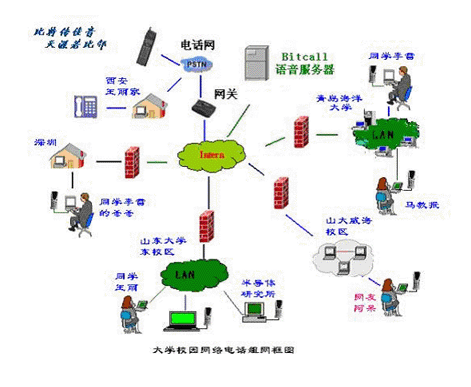 對大學(xué)校園進行的廣泛的調(diào)查顯示,使用校園中IP電話超市撥打電話,能節(jié)省同學(xué)們與外界聯(lián)系40-60%以上,即使0.3元/分鐘的通話資費,對大多數(shù)同學(xué)講,還是不小的經(jīng)濟負(fù)擔(dān),針對校園這一特殊的環(huán)境,我們?yōu)橥瑢W(xué)們找到了一種最佳的解決方案,既能滿足長時間的溝通,又不產(chǎn)生巨額電話費,這就是-----IPCall網(wǎng)絡(luò)電話解決方案,此方案有兩種方式組成: