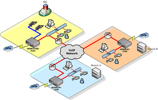單個(gè)G700媒體網(wǎng)關(guān)提供長達(dá)1小時(shí)的語音宣告,可以用于公司問候語和其他各種語音提示一些辦公區(qū)域處于不同樓宇中,通過LAN的聯(lián)絡(luò),4620 IP Phone和 IP softphone發(fā)揮了最大的靈活性和良好的使用感受。