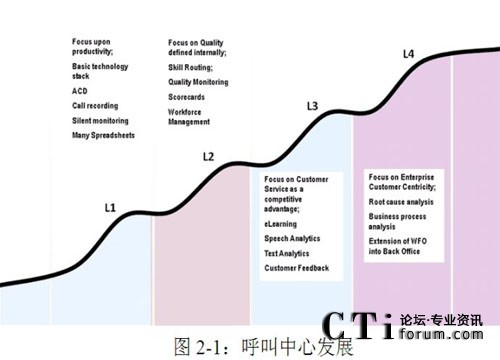 在現(xiàn)實(shí)中,還存在零程度的呼叫中心,這一點(diǎn)并沒(méi)有體現(xiàn)在呼叫中心發(fā)展路線(xiàn)圖上。零程度的呼叫中心就是那些在運(yùn)營(yíng)過(guò)程中并沒(méi)有很好地認(rèn)識(shí)到自己角色以及對(duì)自己未來(lái)的發(fā)展毫無(wú)計(jì)劃的呼叫中心。
