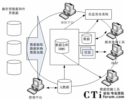 首先,數(shù)據(jù)倉庫是一種有效的管理技術(shù),將分布在網(wǎng)絡(luò)中不同站點的商業(yè)數(shù)據(jù)集成到一起,為決策者提供各種類型的、有效的數(shù)據(jù)分析,起到?jīng)Q策支持作用。它是一個壞境,而不是一件產(chǎn)品,它提供用戶用于決策支持的當(dāng)前和歷史數(shù)據(jù),這些數(shù)據(jù)在傳統(tǒng)的操作型數(shù)據(jù)庫中很難或不能得到[22]