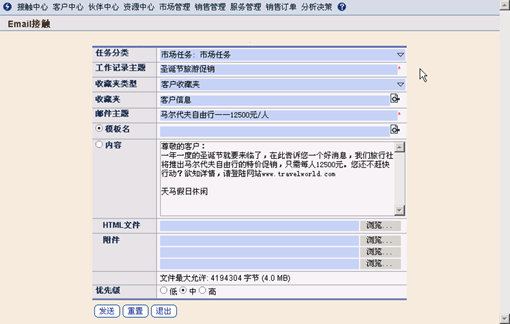 在現(xiàn)代營銷理念中,客戶是企業(yè)的絕對中心,如何提供全面、方便、友善的客戶接觸界面,保持與客戶的密切接觸,如何選擇和利用Web、Email、短信、傳真、電話、信件等客戶接觸方式,大規(guī)模、便捷、經(jīng)濟、有效地向客戶傳遞信息、使溝通順暢,提升企業(yè)市場營銷及服務(wù)能力,業(yè)已成為眾多企業(yè)關(guān)注的一個話題。