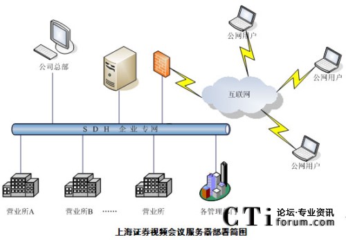 上海證券一直以來都重視IT在企業(yè)發(fā)展中的重要作用,公司成立了信息技術(shù)總部專門負(fù)責(zé)公司信息化平臺的建設(shè)與維護(hù)。2009年4月上海證券視頻會議項目進(jìn)入最終選型階段,經(jīng)過多次測試和評比,最終選用音視頻效果好,運行穩(wěn)定,成熟度高的北京威速科技有限公司視頻會議產(chǎn)品V2 Conference視頻會議系統(tǒng)。2009年6月完成了項目實施部署。