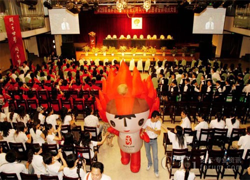 經(jīng)過熱烈的歡呼和拉歌之后, 奧運觀眾呼叫中心三位志愿者代表分別發(fā)言,表達了在奧運期間,為祖國爭光,為奧運添彩的決心。