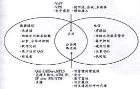 NGN是融合網(wǎng)絡(luò)。數(shù)據(jù)網(wǎng)與電信網(wǎng)曾是兩個(gè)有著不同特性的網(wǎng)絡(luò),它們的融合將帶來一系列新的業(yè)務(wù),并對(duì)網(wǎng)絡(luò)平臺(tái)提出新的要求(見圖1)。因此,NGN的網(wǎng)絡(luò)功能結(jié)構(gòu)如何設(shè)定是我們要關(guān)注的重點(diǎn)。