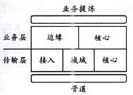 業(yè)務(wù)層的基本功能是在由傳送層提供的“電路”中把負(fù)荷進(jìn)行“整形”并進(jìn)行信息的交換,其目標(biāo)是提升每一個(gè)比特的價(jià)值。業(yè)務(wù)層被橫切為邊緣和核心兩大部分,界線是10萬分組/s。在業(yè)務(wù)層,數(shù)據(jù)分組被單獨(dú)處理或者作為“流”(與特定用戶或應(yīng)用相關(guān)的分組串)來處理,老的技術(shù)包括幀中繼和ATM,新的技術(shù)MPLS有可能成為ATM的替代技術(shù)。