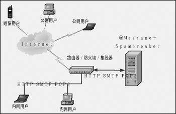 圖3 Spambreaker+3Rsoft公司W(wǎng)eb郵件系統(tǒng)解決方案示意圖