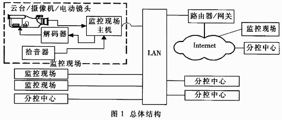隨著計算機網(wǎng)絡技術、多媒體技術、計算機視覺與模式識別技術的發(fā)燕尾服,一種以數(shù)字化、智能化為特點的多媒體遠程數(shù)字監(jiān)控系統(tǒng)應運而生,即基于IP的數(shù)字監(jiān)控系統(tǒng),實現(xiàn)了由傳統(tǒng)的模擬監(jiān)控到數(shù)字監(jiān)控質(zhì)的飛躍。與傳統(tǒng)的模擬監(jiān)控系統(tǒng)相比較,數(shù)字遠程監(jiān)控系統(tǒng)幾個最主要的優(yōu)勢是:可以借助網(wǎng)絡實現(xiàn)遠程監(jiān)控;在遠程不同地點的分控中心或同個分控中心可同時調(diào)看某一個或者幾個監(jiān)控現(xiàn)場的音視頻數(shù)據(jù),從而實現(xiàn)分布式的音頻頻接入和音視頻數(shù)據(jù)共享,同時,可以與監(jiān)控現(xiàn)場人員進行對講;可以對遠程監(jiān)控現(xiàn)場的云臺、攝像機等外圍設備進行控制。視頻、音頻的實時、分布式傳輸及控制指令的可靠傳輸是遠程數(shù)字監(jiān)控系統(tǒng)的一個關鍵問題。本文設計并實現(xiàn)了遠程數(shù)字音頻頻監(jiān)控系統(tǒng),采用IP