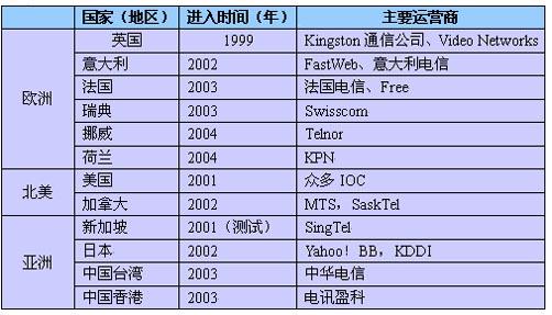 表1 部分國家和地區(qū)進(jìn)入IPTV市場的年份及主要運(yùn)營商