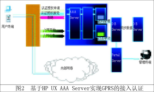 目前有很多Radius軟件可以實(shí)現(xiàn)這個(gè)功能。如: 基于HP UX AAA Server實(shí)現(xiàn)GPRS接入認(rèn)證的邏輯結(jié)構(gòu)如圖2。