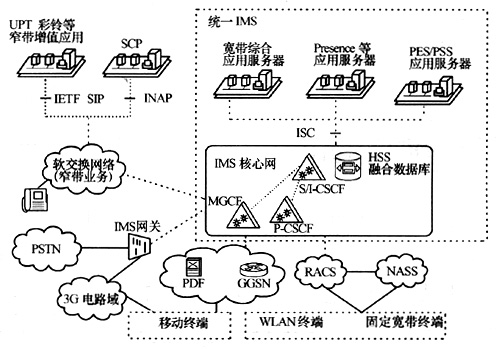 摘要 IMS是NGN的IP多媒體業(yè)務(wù)部件,是為3G的IMS域用戶和固定寬帶用戶提供融合業(yè)務(wù)的統(tǒng)一網(wǎng)絡(luò)。對(duì)于固定寬帶用戶,軟交換是IMS的一種實(shí)現(xiàn)。PSTN/窄帶軟交換與統(tǒng)一IMS分屬不同的網(wǎng)絡(luò)并且將長期并存。為寬帶終端提供業(yè)務(wù)的軟交換設(shè)備必然要成為統(tǒng)一IMS的一部分,覆蓋固定寬帶終端的網(wǎng)絡(luò)將向統(tǒng)一IMS演進(jìn)。本文還介紹了呈現(xiàn)、即時(shí)消息等業(yè)務(wù)服務(wù)器的組網(wǎng)方式以及基于IMS的語音融合業(yè)務(wù)的實(shí)現(xiàn)方案。