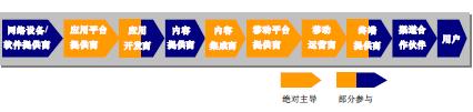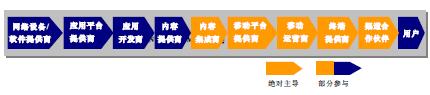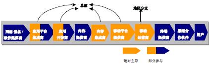 3G時(shí)代的移動(dòng)通信產(chǎn)業(yè)鏈由技術(shù)平臺(tái)提供商、設(shè)備提供商、應(yīng)用平臺(tái)提供商、應(yīng)用開(kāi)發(fā)商、內(nèi)容提供商、內(nèi)容集成商、移動(dòng)平臺(tái)提供商、移動(dòng)運(yùn)營(yíng)商、終端提供商、渠道合作伙伴等市場(chǎng)主體構(gòu)成。移動(dòng)通信產(chǎn)業(yè)鏈?zhǔn)且粋(gè)整體功能鏈狀網(wǎng)絡(luò),構(gòu)成產(chǎn)業(yè)鏈的市場(chǎng)主體隨著移動(dòng)通信技術(shù)、市場(chǎng)競(jìng)爭(zhēng)情況以及用戶(hù)需求的變化而變化。移動(dòng)運(yùn)營(yíng)商在產(chǎn)業(yè)鏈上發(fā)揮的作用也是不同的,每當(dāng)產(chǎn)業(yè)鏈發(fā)生變化時(shí),移動(dòng)運(yùn)營(yíng)商就需要重新進(jìn)行角色定位。