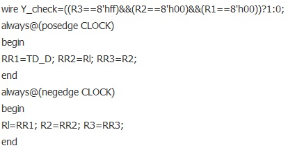 其中的wire變量Y_check就是當(dāng)檢測到FF,00,00的時(shí)候就為1的標(biāo)志。根據(jù)上文所述,區(qū)分SAV和EAV是根據(jù)XY來決定,區(qū)分奇偶場是根據(jù)XY來區(qū)分,所以只有隨后的信號是SAV的時(shí)候,信號分配電路才有效,所以需要描述一段邏輯來判斷,代碼如下: