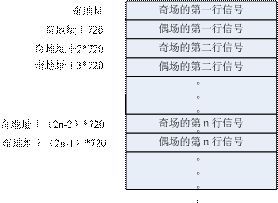 第1種:將一幀的數(shù)據(jù)存儲下來,根據(jù)奇偶場的不同(區(qū)分可以根據(jù)XY),在寫周期的時(shí)候,因?yàn)槠鎴龅男兄g有偶場的信號,所以寫數(shù)據(jù)的時(shí)候需要跳地址寫,根據(jù)行同步信號(或者SAV也可以)來區(qū)分行,換行的時(shí)候地址要加額外的720(用來存放夾雜在奇場信號中的偶場信號),直到出現(xiàn)偶場信號(也就是XY=1)地址切換為初始基地址加720,其余的同奇行的處理方法,具體的地址分配表參照圖4。