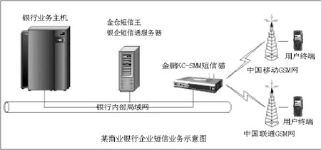 2004年7月,某地級市商業(yè)銀行采用了金鵬KC-SMM短信貓和“金倉短信王銀企短信通解決方案”軟件搭建了企業(yè)級的短信服務(wù)體系。鑒于業(yè)務(wù)量并非很大,所以盡管整個商業(yè)銀行有近三百個辦公網(wǎng)點(diǎn),在設(shè)備上該商業(yè)銀行仍然只采用一套軟硬產(chǎn)品!敖瘗i的短信平臺產(chǎn)品目前在北方鋪開的時間并不長,所以在價格上有一定的傾斜,我們商業(yè)銀行購買的產(chǎn)品,價格比較便宜。”該商業(yè)銀行信息部某負(fù)責(zé)人說。