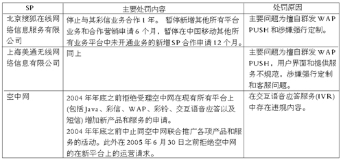 表 中國(guó)移動(dòng)處罰主要SP