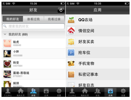 最值得一提的是QQ空間foriPhone加入了當(dāng)前QQ空間最熱門的多個(gè)應(yīng)用:QQ農(nóng)場、情侶空間、搶車位……。其中黃鉆及超級QQ用戶可使用手機(jī)隨時(shí)隨地登錄QQ農(nóng)場。