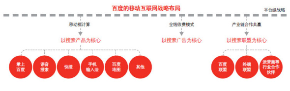 百度無線的戰(zhàn)略仍將以搜索作為核心!鞍俣仍跓o線方面的核心發(fā)展規(guī)劃就三條:第一條,以搜索產(chǎn)品為核心布局移動(dòng)框計(jì)算。第二條,以搜索廣告位核心,探索全線收費(fèi)模式。第三條,以搜索聯(lián)盟為核心,推動(dòng)產(chǎn)業(yè)鏈合作共贏!边@是百度的官方說法。