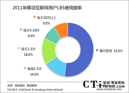 2011年移動互聯(lián)網(wǎng)用戶使用LBS活躍度不足
