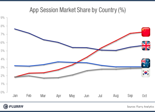 北京時間11月3日消息,據(jù)國外媒體報道,日前,移動應(yīng)用分析網(wǎng)站Flurry發(fā)表分析文章稱,iOS和Android移動應(yīng)用的下載量不斷增加,而中國的移動應(yīng)用下載量和新應(yīng)用需求更是迅猛增長,中國已經(jīng)一躍成為全球第二大移動應(yīng)用市場,全球應(yīng)用開發(fā)者都不可忽視中國市場。