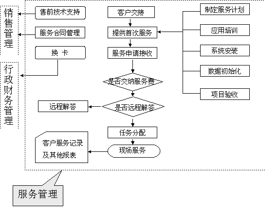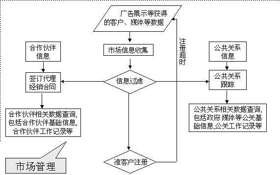 選定適合中小企業(yè)應(yīng)用的CRM軟件 ----啟利CRM ( ChineseCRM.Net ),并由啟利公司負(fù)責(zé)提供實施服務(wù)。CRM系統(tǒng)的主要模塊包括:市場管理、銷售管理、服務(wù)管理、行政管理,各模塊主要業(yè)務(wù)流程圖如下: