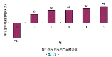 以信用卡服務為例,爭取一個新的用戶平均要51美圓,用于廣告、推銷和開戶等開支。用戶開始時花錢很少,但為公司帶來一定的利潤。但如果用戶繼續(xù)使用到第二年,就會為公司帶來更多的經(jīng)濟效益,因為公司與客戶之間的信任和客戶對公司的滿意,致使客戶更多地通過信用卡消費。(圖:"信用卡用戶產(chǎn)生的價值")用戶貢獻在增加,公司的運作費用卻在不斷減低。信用卡公司可以不斷減少對客戶信用的審核時間。保持長期的客戶關系,還可以減少廣告支出,客戶本身就是一個免費的廣告資源。很多人在消費前喜歡聽取朋友的意見,覺得比廣告更可信。