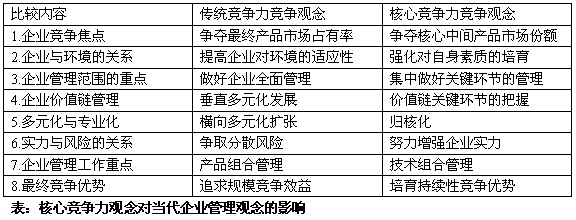 。2)核心競(jìng)爭(zhēng)力觀念對(duì)當(dāng)代企業(yè)管理理念的影響