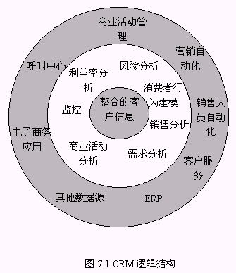 5) EIP(Enterprise Information Portal,企業(yè)信息門戶)提供了用戶獲取信息的統(tǒng)一界面(基于WEB)。通過這個(gè)界面,I-CRM將客戶知識分發(fā)在包括事務(wù)型系統(tǒng)在內(nèi)的所有企業(yè)應(yīng)用,使I-CRM成為企業(yè)應(yīng)用的核心并促進(jìn)企業(yè)集成;