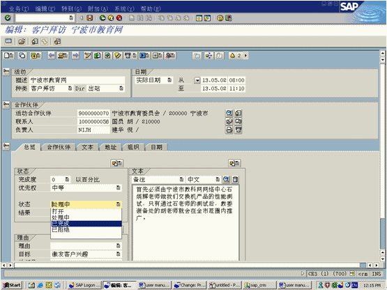 Explorer的層級(jí)樹結(jié)構(gòu)顯示客戶間的業(yè)務(wù)關(guān)系。通過報(bào)價(jià)菜單選項(xiàng)中預(yù)定義報(bào)價(jià)信息使用訂單輸入功能。可以轉(zhuǎn)化成為訂單,后臺(tái)功能與SAPR/3集成可以實(shí)現(xiàn)。