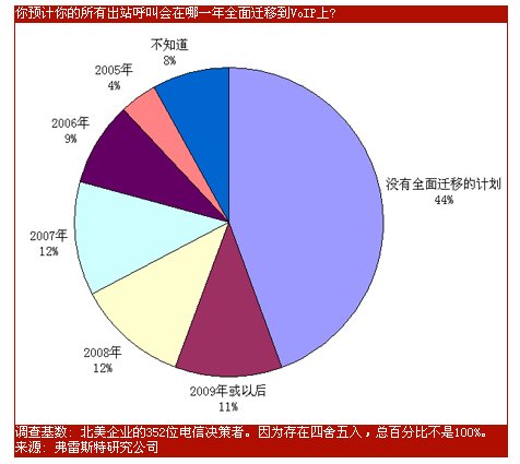 據(jù)弗雷斯特研究公司聲稱,經(jīng)濟(jì)上的限制因素仍是許多IT部門面臨的一個(gè)障礙。不過用戶們正在想方設(shè)法通過可帶來重大投資回報(bào)以證明有必要投資VoIP。(硬件和解決方案的開支從1萬美元到10萬美元不等。)